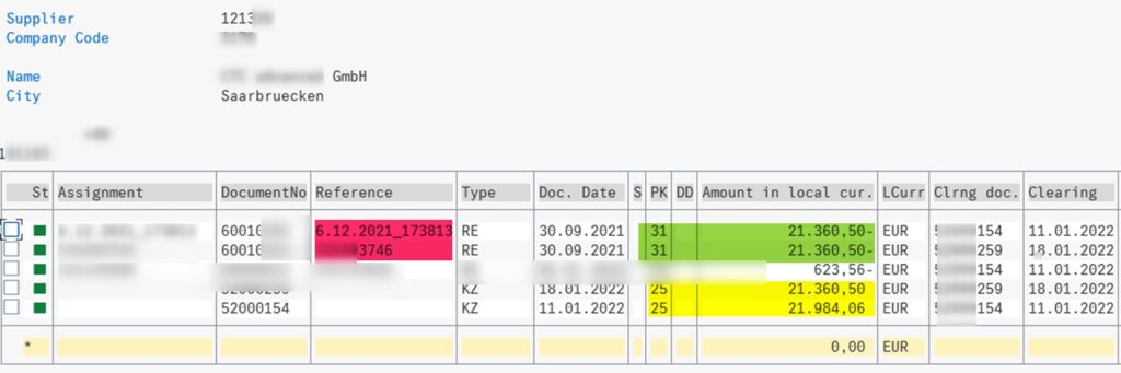 Die Rechnung XXX3746 wurde, wahrscheinlich wg. Überschreitung des Zahlungsziels, erneut übermittelt und in den workflow gegeben. Durch eine kundenseitige Veränderung der Rechnungsnummer erfolgte die zweite Buchung und Zahlung ohne Warnung durch die SAP-Validierung.